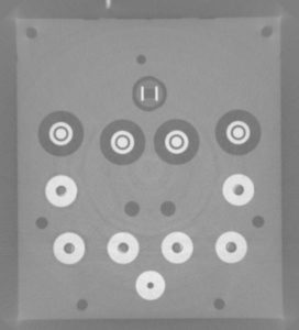 The size of the part can also be a limiting factor for CT scanning. The largest commercially available panel is currently a 16”x16” panel. For our scanners, this means a single scan can capture approximately the volume of a 9.5” diameter cylinder which is 9.5” tall. Because the object can only get so close to the panel, the full 16” cannot be achieved. This is related to the magnification effect described above. However, multiple scans can capture longer parts (or by use of helical scanning). Some systems offer what is called ‘panel shift’ technology which takes multiple images for each x-ray image to capture larger parts. This makes the scans take longer but allows a larger part size to be scanned. Using single line LDA (Linear Diode Array) or CLDA (Curved LDA) will allow a larger part width of around 17”-20” inches. However this takes longer to scan as LDAs only capture 1 line of data at a time instead of up to 2000 lines at a time from a 16” x 16” panel scan.
