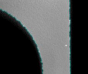 White dot to the right side is contamination from a more dense material in this AM build.