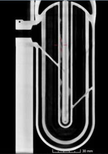 Typical AM part 2D view from CT scan image showing complicated internal features possible with AM